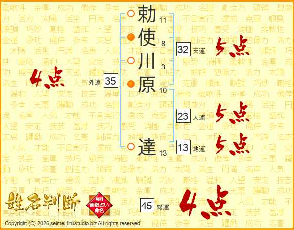 勅使川原達さんの総運は45画の4点!