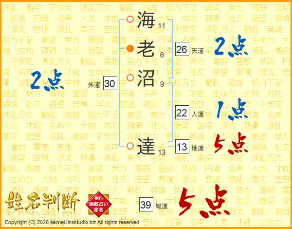 海老沼達さんの総運は39画の5点!