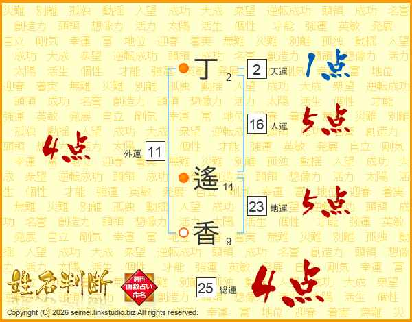 丁遙香さんの総運は25画の4点!