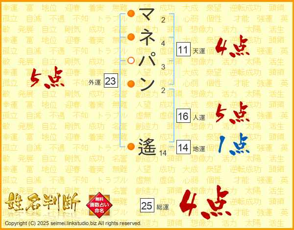 マ(2画)ネ(4画)パ(3画)ン(2画) 遙(14画)