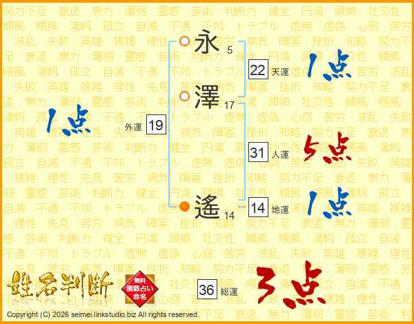 永澤遙さんの人運は31画の5点!