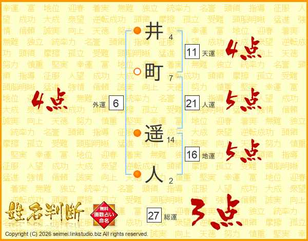 井(4画)町(7画) 遥(14画)人(2画)