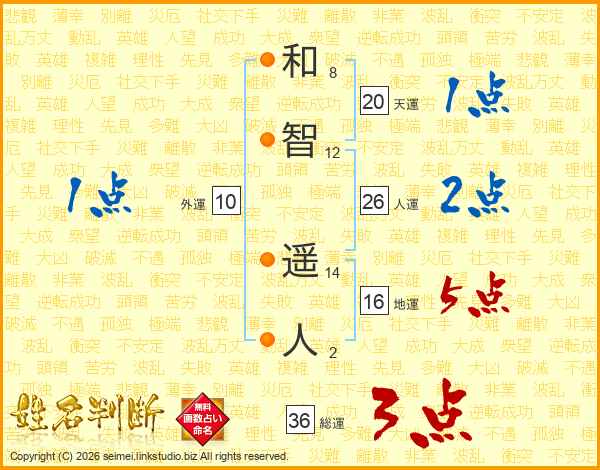 和智遥人さんの人運は26画の2点!