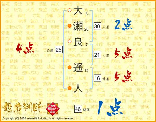 大瀬良遥人さんの総運は46画の1点!