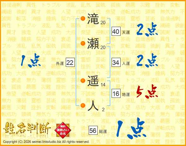 滝瀬遥人さんの総運は56画の1点!