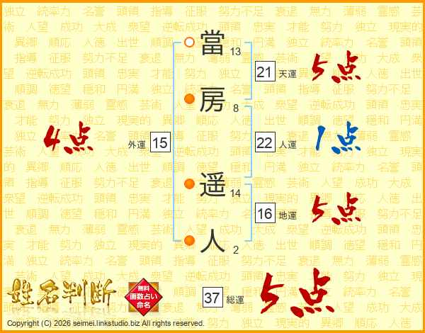 當房遥人さんの人運は22画の1点!
