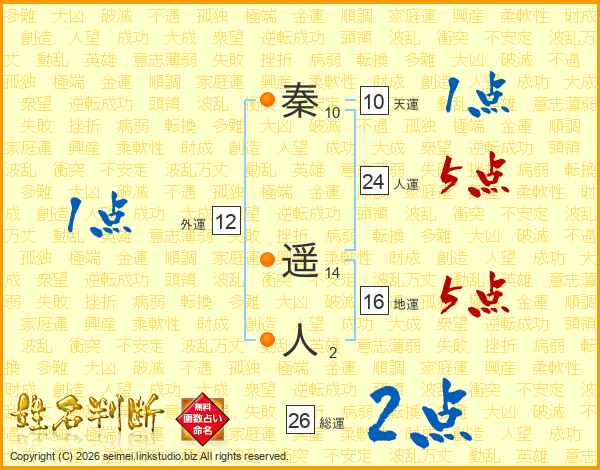 秦遥人さんの総運は26画の2点!