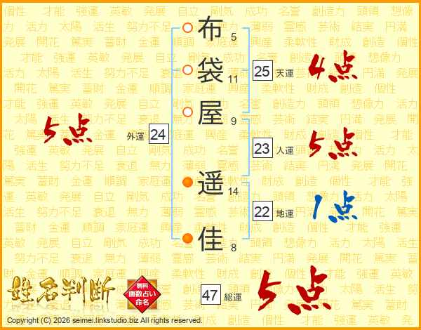 布袋屋遥佳さんの総運は47画の5点!