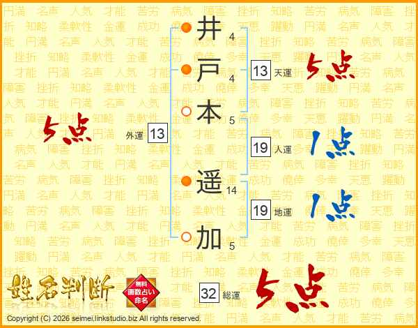 井戸本遥加さんの天運は13画の5点!