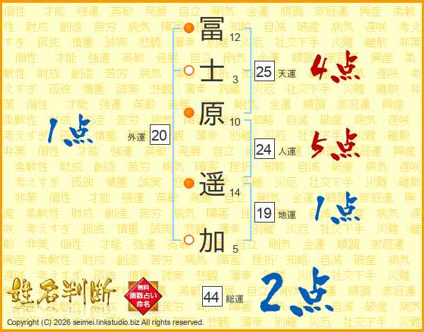 冨士原遥加さんの総運は44画の2点!