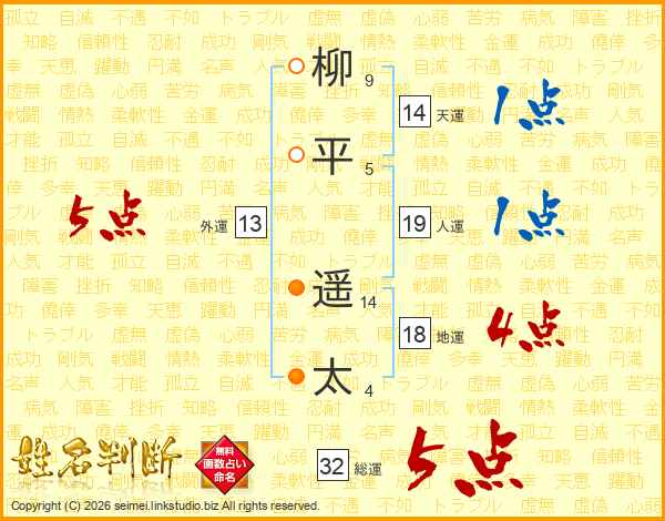柳平遥太さんの総運は32画の5点!