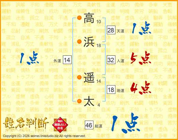 高浜遥太さんの総運は46画の1点!