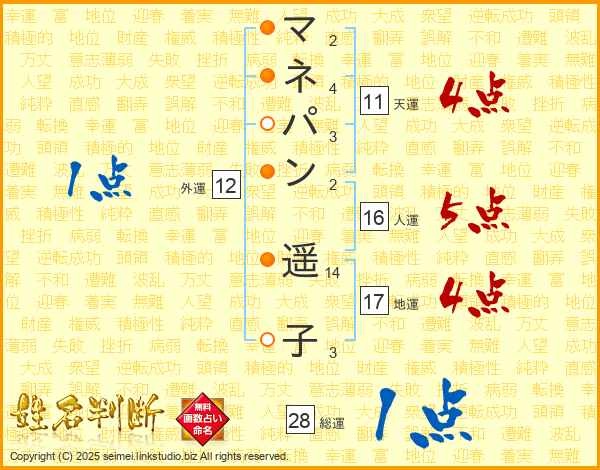 マ(2画)ネ(4画)パ(3画)ン(2画) 遥(14画)子(3画)