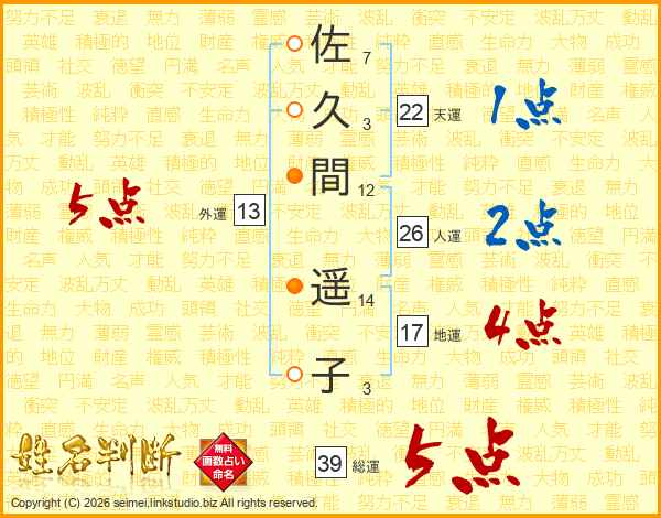 佐久間遥子さんの総運は39画の5点!