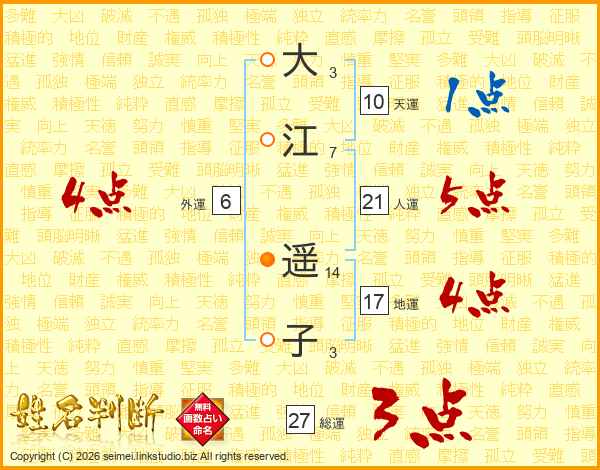 大江遥子さんの総運は27画の3点!