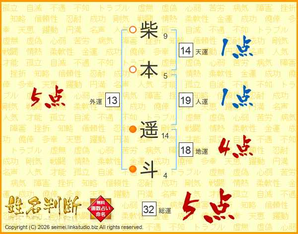 柴本遥斗さんの総運は32画の5点!