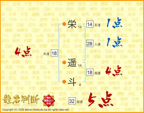 栄(14画) 遥(14画)斗(4画)