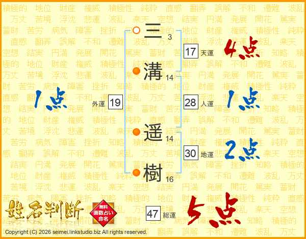 三溝遥樹さんの総運は47画の5点!