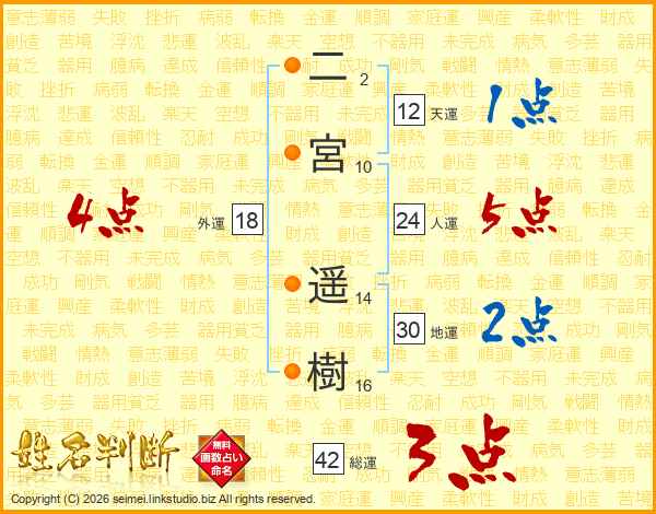 二宮遥樹さんの総運は42画の3点!