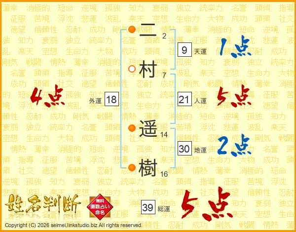 二村遥樹さんの総運は39画の5点!