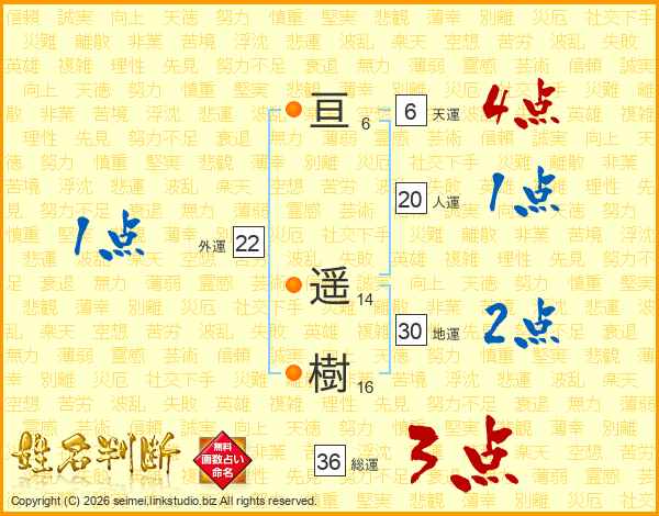 亘遥樹さんの総運は36画の3点!