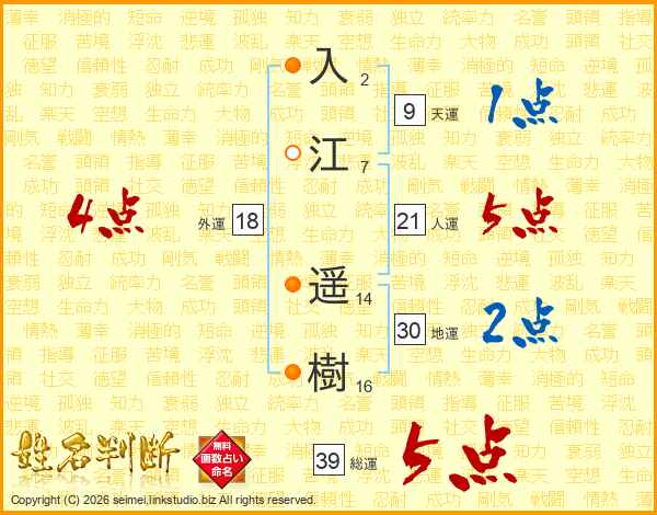 入江遥樹さんの総運は39画の5点!