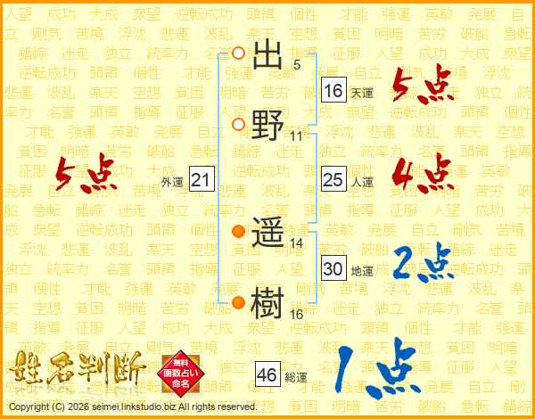 出野遥樹さんの総運は46画の1点!