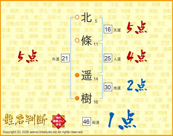 北條遥樹さんの総運は46画の1点!