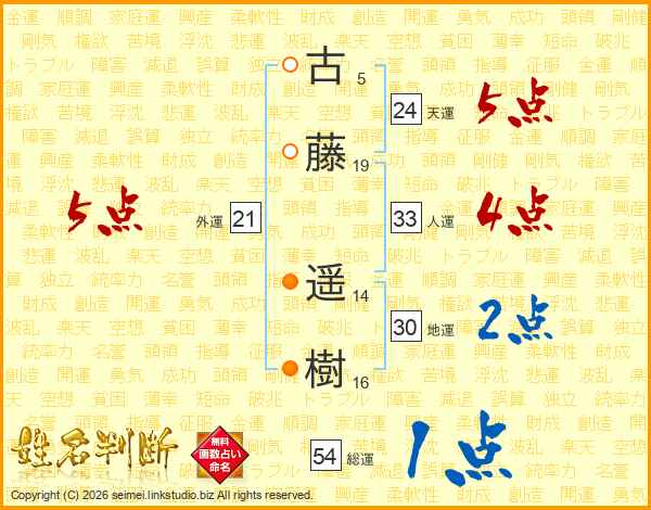 古藤遥樹さんの総運は54画の1点!