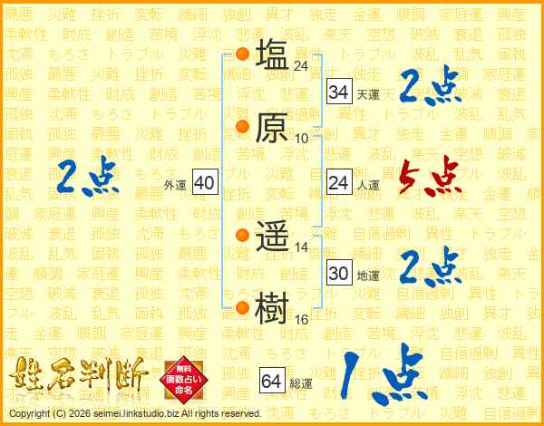 塩原遥樹さんの地運は30画の2点!