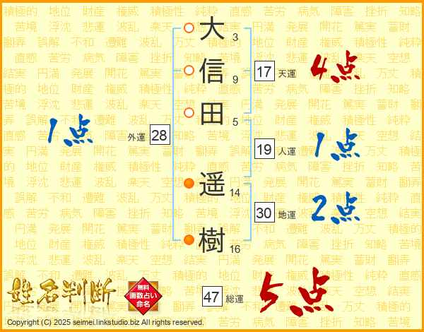 大信田遥樹さんの総運は47画の5点!