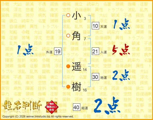 小角遥樹さんの総運は40画の2点!