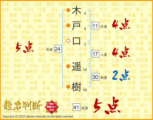 木(4画)戸(4画)口(3画) 遥(14画)樹(16画)
