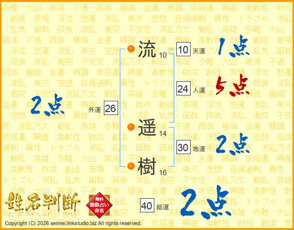 流遥樹さんの人運は24画の5点!