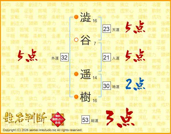 澁谷遥樹さんの総運は53画の3点!