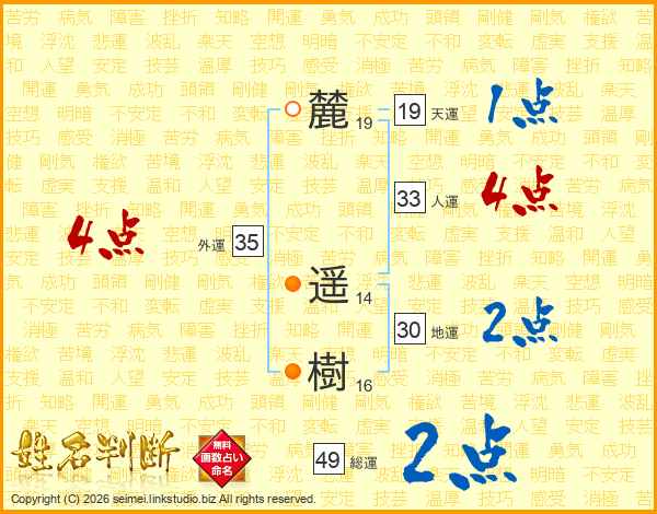 麓遥樹さんの総運は49画の2点!