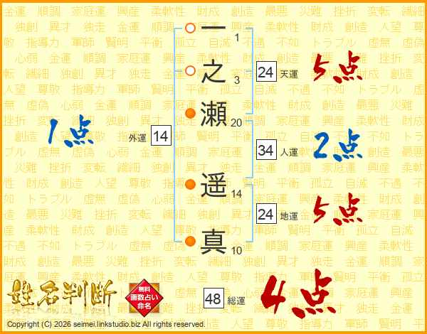 一之瀬遥真さんの総運は48画の4点!