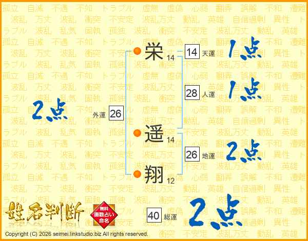 栄(14画) 遥(14画)翔(12画)