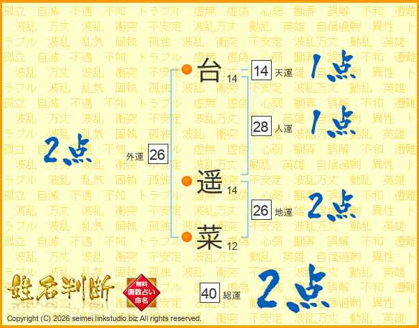 台遥菜さんの地運は26画の2点!