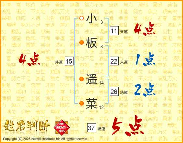 小板遥菜さんの総運は37画の5点!