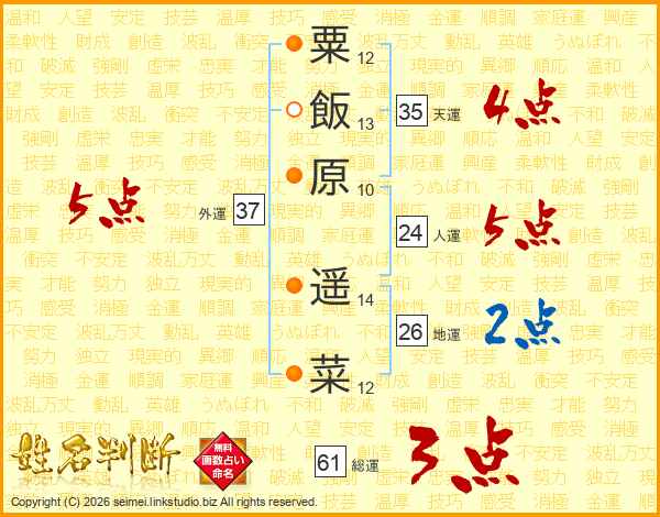 粟(12画)飯(13画)原(10画) 遥(14画)菜(12画)