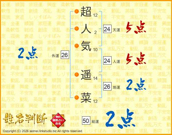 超人気遥菜さんの天運は24画の5点!