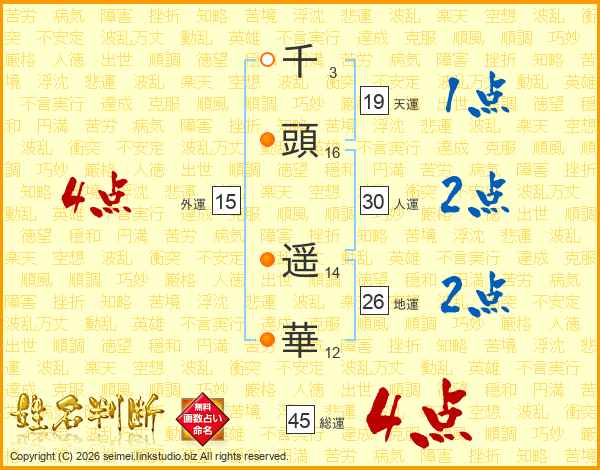 千頭遥華さんの外運は15画の4点!