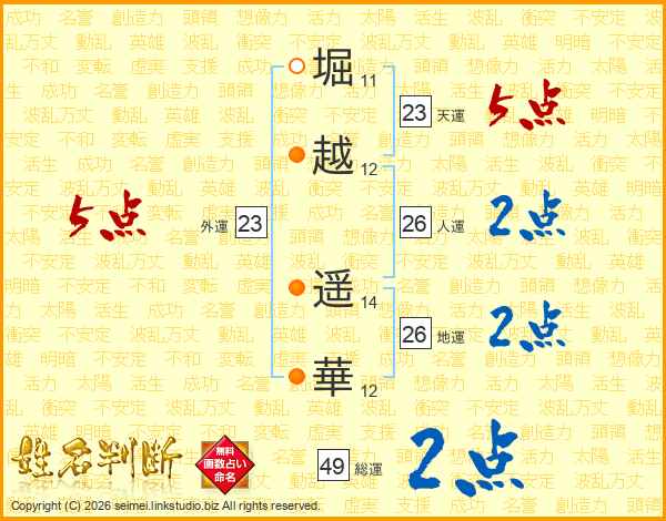 堀越遥華さんの外運は23画の5点!