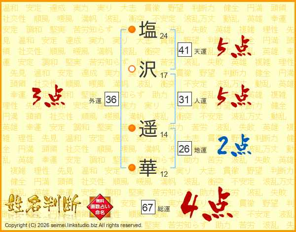 塩沢遥華さんの天運は41画の5点!