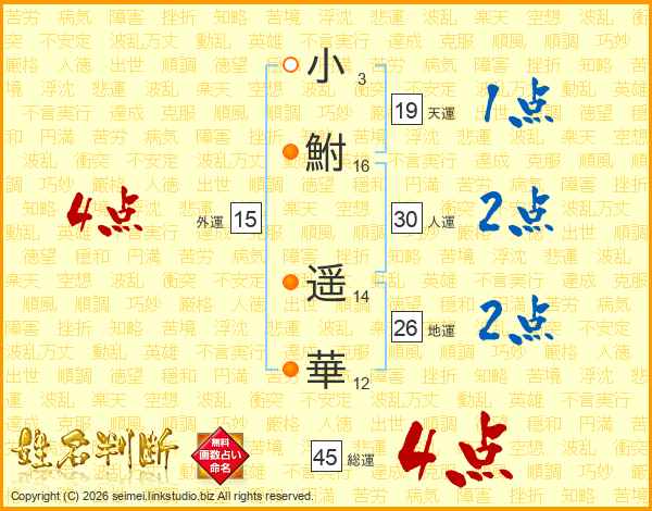 小鮒遥華さんの総運は45画の4点!
