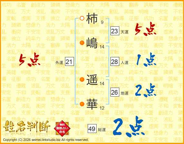 柿嶋遥華さんの総運は49画の2点!