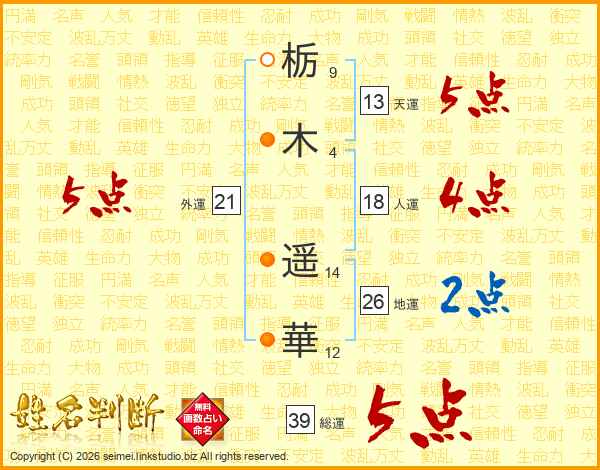 栃木遥華さんの総運は39画の5点!