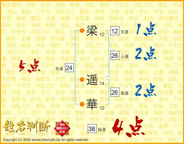 梁遥華さんの総運は38画の4点!
