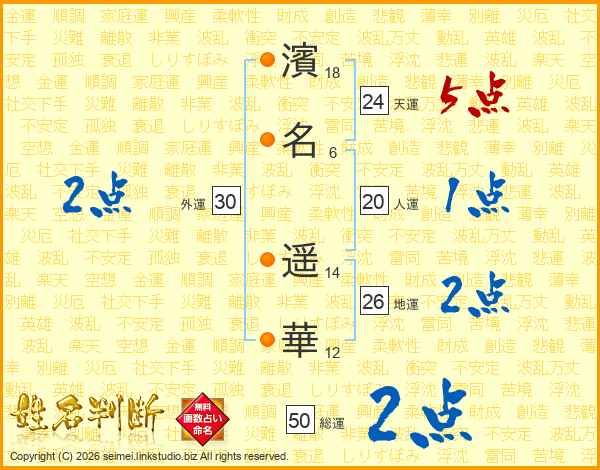 濱(18画)名(6画) 遥(14画)華(12画)